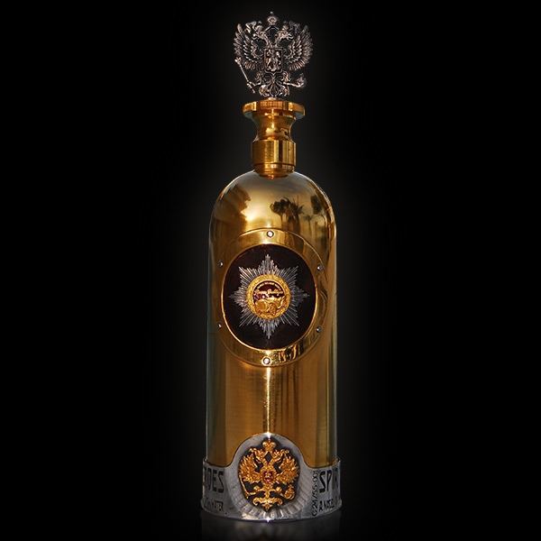 這款酒裝飾著白金和黃金,瓶蓋上還有一只鑲鉆的俄羅斯帝國(guó)鷹。